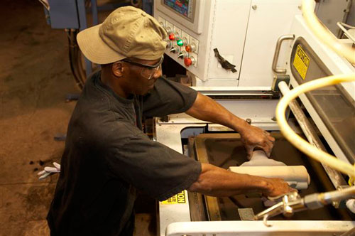 Environmentally friendly, non-silica formulated molding sand is delivered by a continuous loop system. Properties of the sand are monitored by Simpson fully automatic control system. If sand cores are required to make the casting they are made in either the Shell or Chemically Bonded Sand process to satisfy requirements for high tolerances and microfinish when needed.
